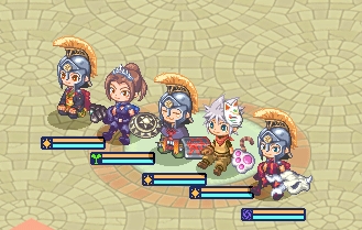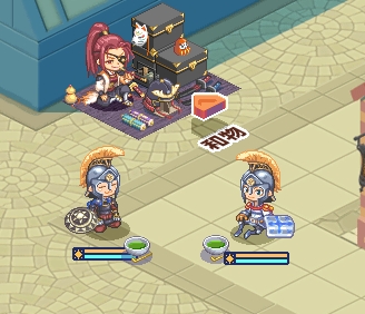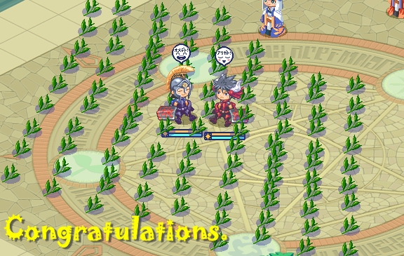 開催場所は神殿前の広場です。僕が21:55頃にお邪魔したときには既に4名ほどの入室者がいらっしゃり、神殿前は大変な賑わい(お茶やらハートチョコやら鏡餅なんかが散乱してましたw)です。さながら一人暮らしのオトコの部屋みたいな状態でした。で、記念撮影をということで急いで綺麗に後片付けし上のとおり写真に収めさせていただいたってところです。