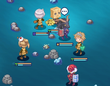 で、おしゃべりも尽きたところで、何かを集めている人のお手伝いをしようということになり、Rotoサマのお手伝いをすることに。海のヒカリゴケを集めることになりました。その時点でおぼろサマは急用で退室され、すぐあとにChiropサマが入室。この5名で海へと向かいます。