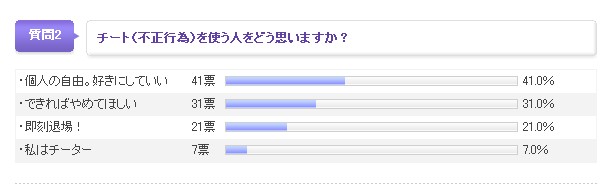 貴重な意見ありがとうございます。やはりチートをしない方にしてみればチートはなんとしてもなくしてもらいたいものですよね。