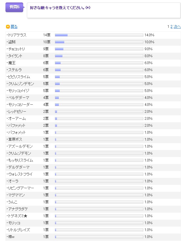 で、次いきます。スキな敵キャラを挙げてもらいました。