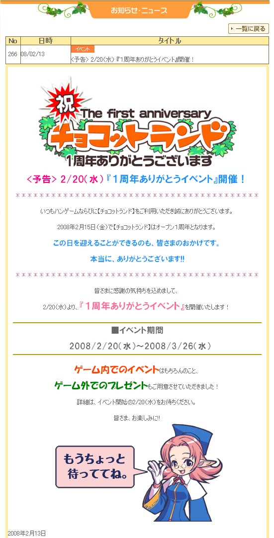 課金ですっかりやる気を失っています。まあ、ある意味仕方ないと諦めてはいるんですがね。買わなきゃいいだけだし。いっそのことチョコットランド自体課金にしてくれれば諦めもつくのに・・・なんて投げやりな感じです。