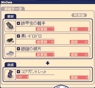 それにしてもコアはなんで鉄甲虫の籠手より性能落ちるのかねぇ?甚だ疑問なのですが・・・。コア作ってすぐ次のステップ進まないと、なんか損した気分になるよね?う~む