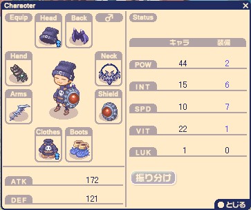 今日久々にこの子でログインしてみたら、ナント手装備が「鉄甲虫の籠手」、足装備が「ハリネズシューズ」じゃありませんか