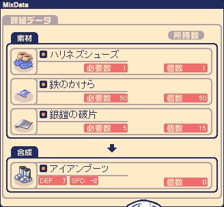 昨日旧メインに情が移っちゃったみたいなことを書いたけど、情の移っているうちに装備整えちゃおうということで、今日はアイアンブーツを作ってあげることに。。。