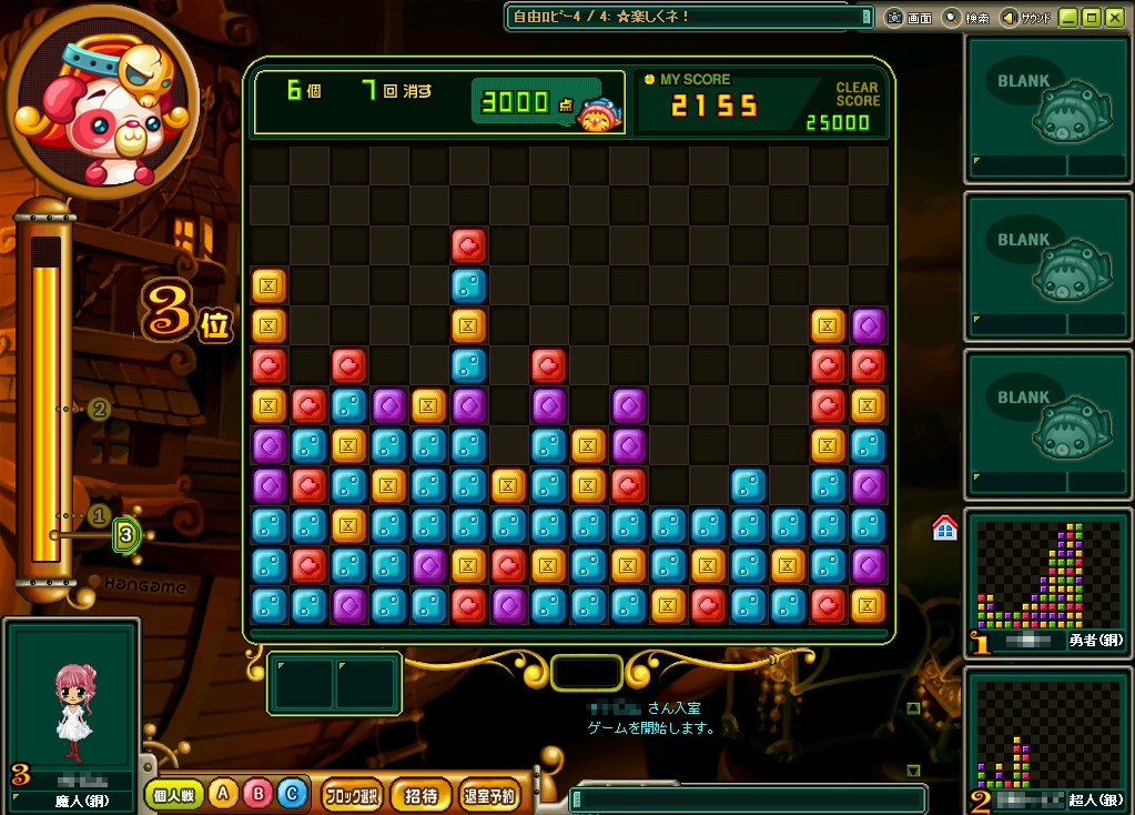 一人「街でドップリ」なんていう部屋を構えて、塔キャラをツツいて遊んでいました。しばらくツツきまわして、そろそろ飽きてきたなぁ・・・なんて思っていたところに、一人のお客様が御入室~!