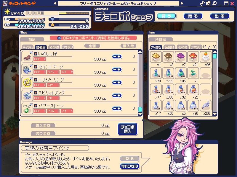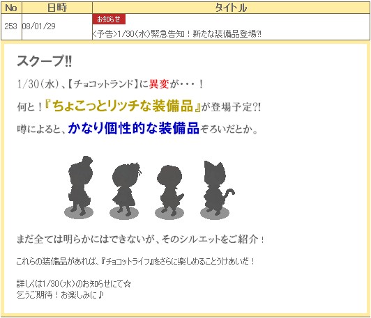 この違いわかりますか?賢い皆さんならもうお分かりでしょう。ついにというか、やっぱりというかチョコットランドも本格課金ゲーム化していくつもりでしょう。コレだけの人気ゲーム、ハンゲが黙って見ているわけありませんモン。まあ、ハンゲも営利企業ですから、仕方ないといえば仕方ないんですが。。。