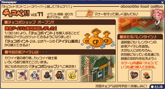 某所では次回チョコぺ更新時にイベントが開始されるのでは?という説も出ていますが、個人的にはどうかな?と思ったりしています。まあ、ハンゲの開発スタッフに期待しつつ指をくわえて待つことにしましょう。