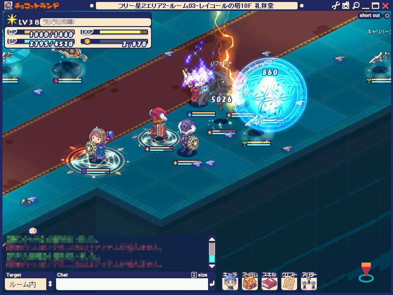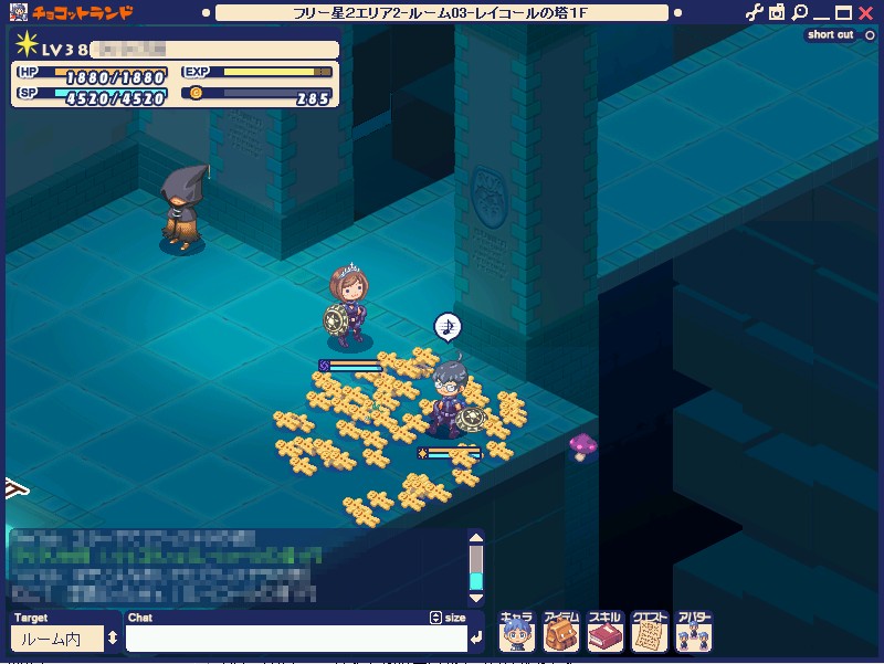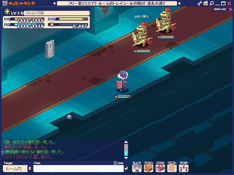 で、今日。「バフォ倒し隊」って部屋を作って待っていると、すぐに一人の闇戦士が来てくれました。僕と同じLv38です。