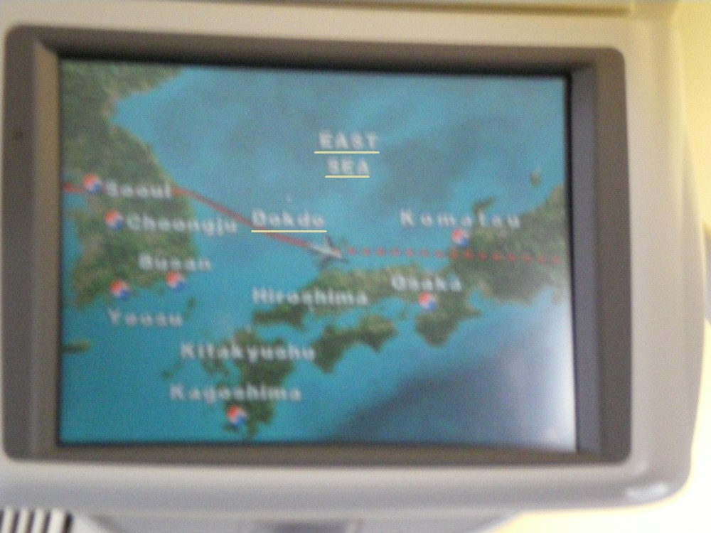 ちょっと見づらいですが、日本海は「East Sea(東海)」、竹島は「Dokdo(独島)」と強調されていました。