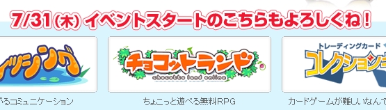 7/31(木)からは、かんたんゲームでも人気の「チョコットランド」「わくわくフィッシング」「コレクションキング」ワールドに登場♪みんなも一緒に冒険しようね☆