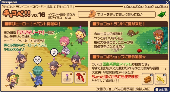 チート対策を真剣にやりはじめたということは、当然ハンゲもチョコを正常なゲーム、つまり儲けの出るゲームにしていく方向で動き始めていると考えることが出来ます。現状、チョコでの儲けといえばゲーム内ではキャラスロ、倉庫、そしてチョコポショップです。チョコ外、つまりハンゲ全体として考えたときにはアバガチャなどもありますね。でも、アバガチャも継続して儲けが出るかというと、ダブったりアバへの装備に限界があったりでなかなかそうもいかない。そうすると、やはりチョコ内で継続的に儲けが出るシステムを考える必要がある・・・